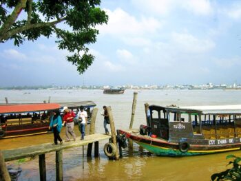 08h15: Đoàn lên đò lớn, cùng du ngoạn cảnh sông nước miền Tây trên dòng sông Tiền – hạ